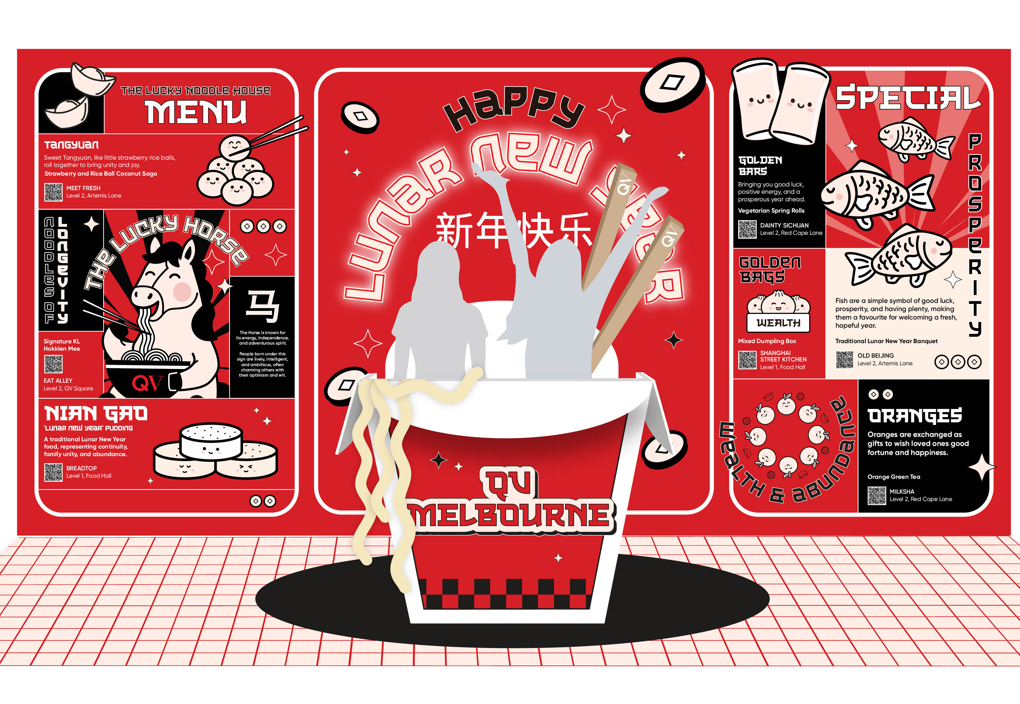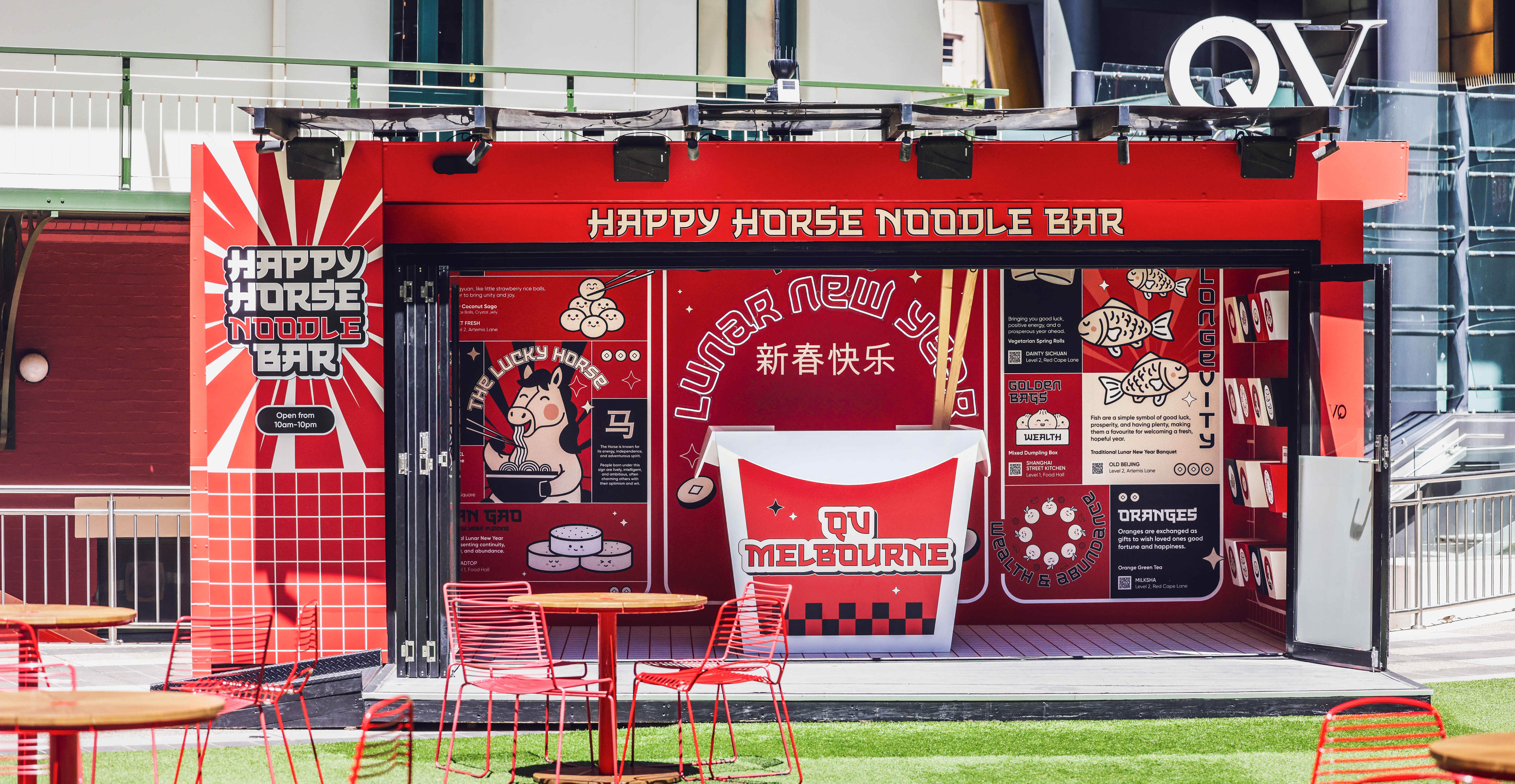 In celebration of Lunar New Year, we partnered with QV Melbourne to create the Happy Horse Noodle Bar, turning the space into a vibrant, immersive festival destination.
