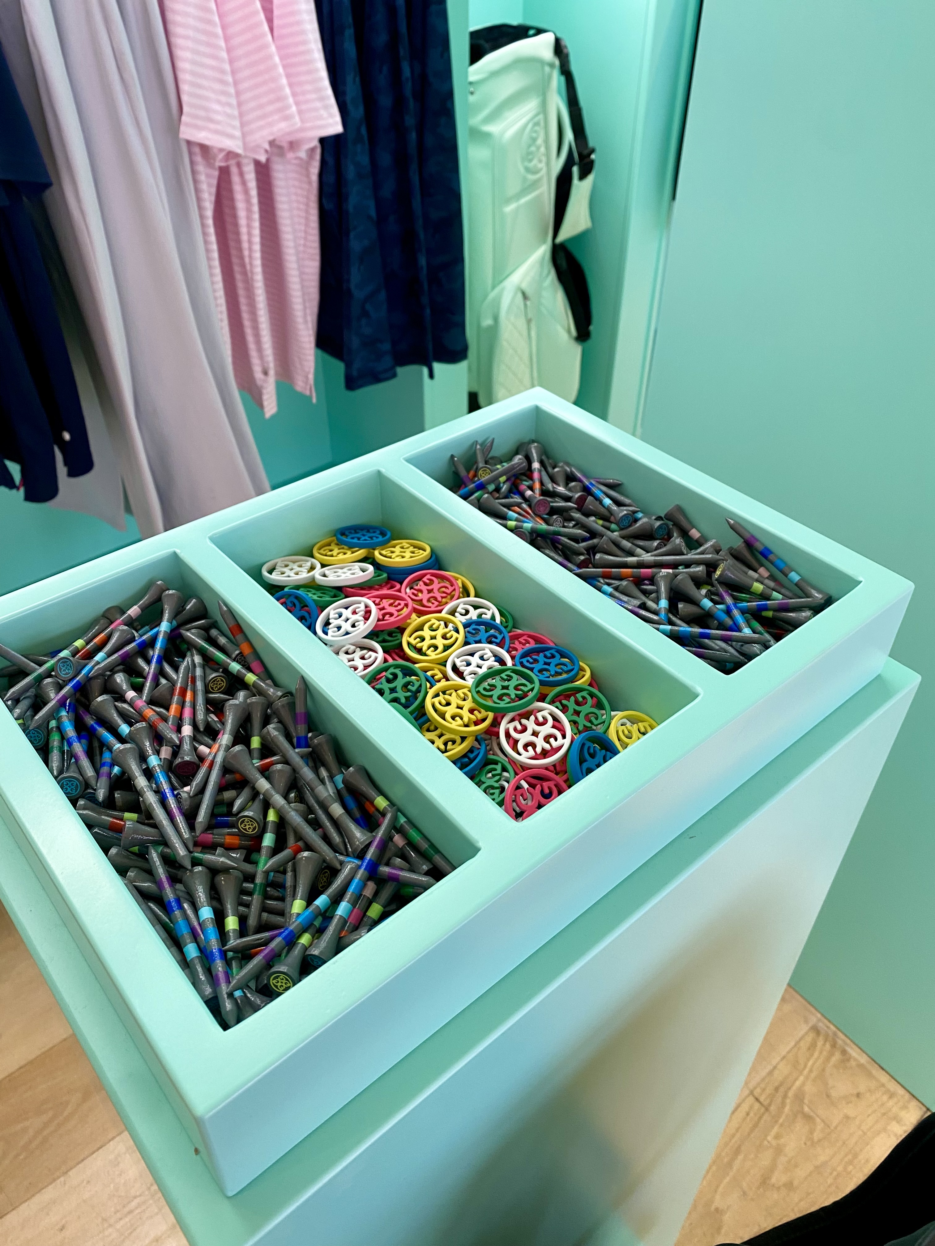 Our role was to translate the brands dna with a bold monotone mint green aesthetic, consisting of a bespoke fabricated back-wall with in-built rails, shelving and display niches, 3d logo’s and integrated led lighting - along with a freestanding rtw rail and a custom built plinth to showcase their premium golf bags and range of accessories.