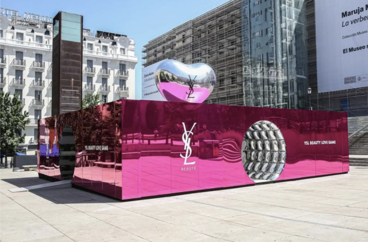 Set against the cultural backdrop of Plaza Juan Goytisolo, beside the iconic Museo Reina Sofía, the pop-up invites visitors into a world where makeup, fragrance, and self-expression collide in a vibrant, interactive environment. The activation transforms the public square into a sensory playground infused with YSL’s unmistakable edge.